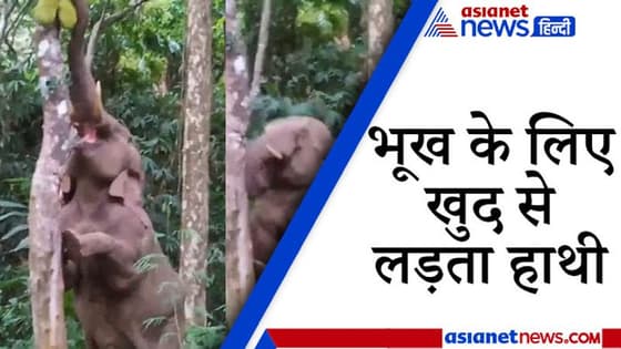 भूख लगी तो दो पैरों पर खड़ा हो गया हाथी, 25 फ़ीट की ऊंचाई से तोड़ खाने लगा कटहल