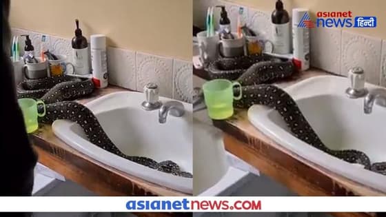 ठंडक लेने बाथरुम की सिंक में जा बैठा खतरनाक अजगर, इतने में पहुंच गया घर का मालिक, फिर जो हुआ