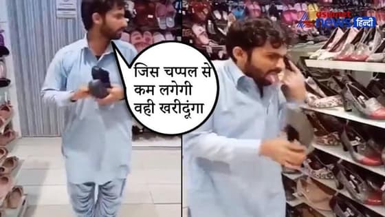 पत्नी के लिए चप्पल खरीदने पहुंचा युवक...पहले खुद को मारकर किया चेक, वीडियो देख लोट पोट हो जाएंगे आप
