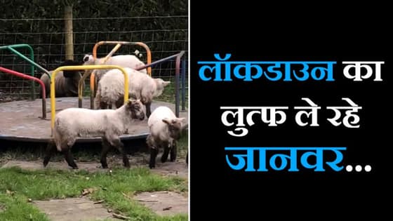 लॉकडाउन: खाली पार्क देख मां के साथ झूला झूलने पहुंच गए भेड़ के बच्चे, देखें वीडियो