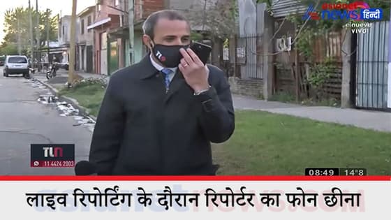 वीडियो डेस्क। सोशल मीडिया पर अर्जेंटीना (Argentina) का एक वीडियो सामने आया जहां एक लाइव प्रसारण (Live Broadcast) करने के लिए तैयार होते ही एक टीवी रिपोर्टर से उसका मोबाइल फोन लूटा गया। डेली मेल की खबर के मुताबिक, डिएगो डेमारको (Diego Demarco) सारंडी शहर (Sarandi) से एक लाइव प्रसारण के लिए तैयार हो रहे थे तभी एक आदमी ने उनका फोन पकड़ा और भाग गया. चौंकाने वाली घटना कैमरे में कैद हुई और फुटेज को ऑनलाइन प्रसारित किया गया है।