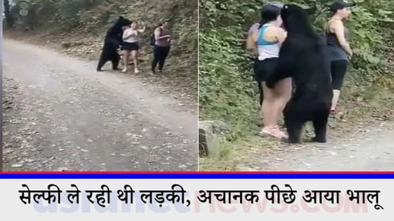 सेल्फी ले रही थी लड़की, अचानक पीछे आकर खड़ा हो गया भालू और देने लगा पोज