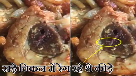 दो लड़कों ने होटल में चिकन खाने को मंगवाया लेकिन उनके होश तब उड़ गए जब उसमें उन्हें कीड़े चलते दिखाई दिए।