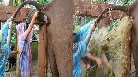 हटके डेस्क: कब्ज की समस्या हर किसी को परेशान कर देती है। चाहे इंसान हो या जानवर, कब्ज की समस्या हर किसी को परेशान कर देती है। ऐसी ही समस्या से परेशान हो चुके थाईलैंड के एक चिड़ियाघर के हाथी का इलाज करने के दौरान ऐसा हादसा हुआ की वीडियो वायरल हो गया। दरअसल, तीन डॉक्टर्स हाथी का पेट साफ़ करने पहुंचे। जब सीनियर डॉक्टर ने पाइप से हाथी का पेट साफ़ किया, तब अचानक जोरदार विस्फोट हुआ और सभी डॉक्टर्स हाथी के पेट में जमा पानी में भीग गए। इसका वीडियो काफी वायरल हो रहा है।