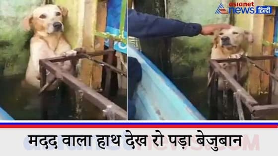 बाढ़ में डरा-सहमा कुत्ता पानी में खड़े होकर कर रहा था मौत का इंतजार, मदद वाला हाथ देख रो पड़ा बेजुबान