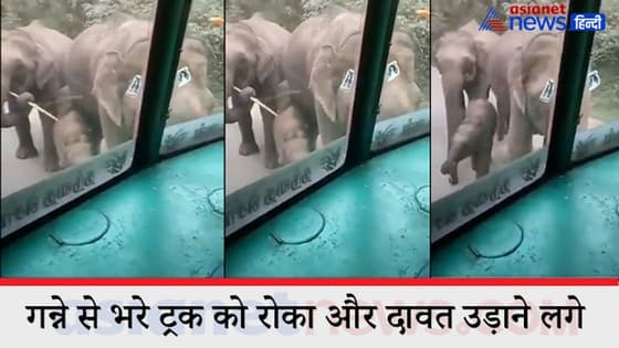 हाथी के परिवार ने रोका गन्ने का ट्रक, उड़ाने लगे दावत, लोग बोले टैक्स वसूला