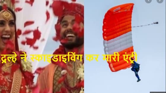 वीडियो डेस्क। अमेरिका में रहने वाले भारतीय मूल के अक्षय यादव ने अपनी शादी में ग्रैंड एंट्री के लिए अलग तरीका चुना।अपनी शादी में पहुंचने के लिए जहां सब लोग घोड़े पर सवार होकर आते हैं वहीं अक्षय यादव आसमान में स्काइडाइविंग करते हुए आए। मेक्सिको के लॉस कैबोस में अपने प्यार गगनप्रीत सिंह से शादी करने के लिए वह हवाई जहाज से कूद गए और अपने पैराशूट के साथ तेज हवा का सामना करते हुए अपनी शादी में पहुंचे। आकाश यादव का एक वीडियो भी इंस्टाग्राम पर शेयर किया गया है।