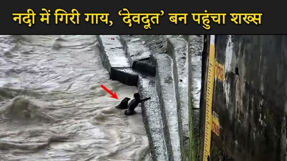 नदी में बह रहे गाय के बछड़े को बचाने कूद गया शख्स, लोग बोले ये है सुपर हीरो