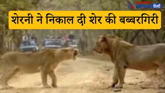 वीडियो डेस्क। शेरनी की दहाड़ के आगे शेर भी ढ़ेर हो जाता है। ये वीडियो देख आप यही कहेंगे जंगल का राजा शेर और घर की रानी सवा 'शेर'। शेरनी जब शेर पर दहाड़ी तो बब्बर शेर भी फुस्स हो गया। वो भी शेरनी के आगे कुछ नहीं बोला, बेचारा शांत सा होकर चुपचाप चल दिया।