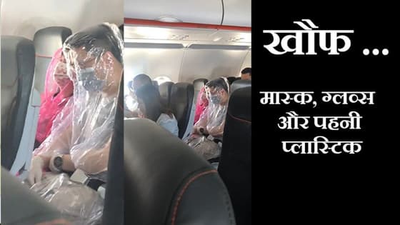 वीडियो डेस्क। कोरोनावायरस का कहर थमने का नाम नहीं ले रहा है। इस वायरस के कारण अब तक 2,300 से अधिक लोगों की मौत हो चुकी है। ऑस्ट्रेलिया की एक फ्लाइट में दो यात्री कोरोनावायरस के डर से खुद को प्लास्टिक से बचाने की कोशिश करते हुए नजर आए। डरे हुए दोनों यात्रियों ने चेहरे पर मास्क लगाया हुआ था। इसके साथ उन्होंने अपने हाथों में ग्लव्स और प्लास्टिक का हुड भी पहना हुआ था। इसका वीडियो सोशल मीडिया पर वायरल हो रहा है।