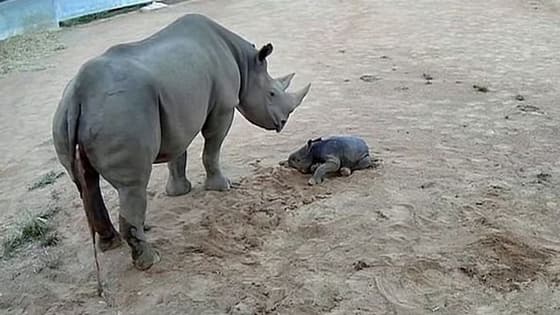 पैदा होते ही चलने की जल्दी में मुंह के बल गिरा बेबी राइनो, कैमरे में कैद हुए पहले कदम