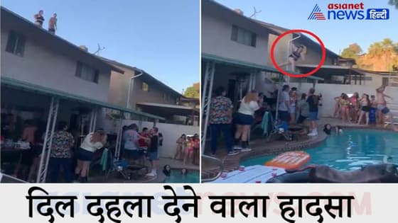 सोशल मीडिया पर अमेरिका में हुए एक दिल दहला देने वाला वीडियो काफी वायरल हो रहा है। जिसको देखकर आप हैरान रह जाएंगे।एक लड़की छत से पूल में कूद गई। लेकिन कूदने से पहले वो रूफटॉप से टकरा गई और पूल में कूद गई।
