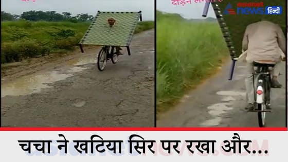 सोशल मीडिया पर एक मजेदार वीडियो सामने आया है। इसमें देखा जा सकता है कि एक गांव में एक शख्स साइकिल चलाते हुए खटिया को लेकर जा रहा है। जनाब ने साइकिल चलाते-चलाते खटिया को सिर पर रखा और चल दिए। दिखने में ये बड़ा आसान लगता है। लेकिन ऐसा बिल्कुल नहीं है। इसके पीछे काम कर रहा है एक जुगाड़। सोनल कालरा ने ये वीडियो अपने ट्विटर पर शेयर किया है। वो लिखते है, काफी टाइम से ऐसा नहीं देखा। इस वीडियो में चाचा अपनी गर्दन खटिया में से पार निकाल लेते हैं और फिर साइकिल चलाते हैं। वीडियो वायरल होने के बाद यूजर्स ने इसे मजेदार बताया किसी ने कहा ये भारत का जुगाड़ है।