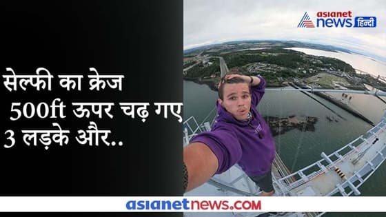 3 लड़कों की बेवकूफी का वीडियो, जान जोखिम में डालकर 500 फीट ऊपर चढ़कर ली सेल्फी