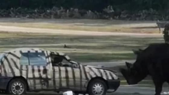 गैंडे को आया गुस्सा, तो अपने केयर टेकर की कार का निकाला कचूमर