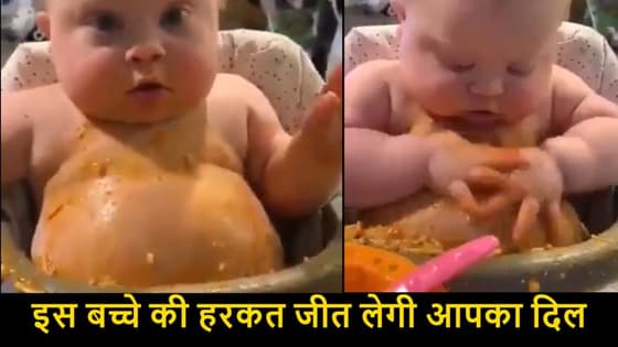 सोशल मीडिया पर एक बच्चे का वीडियो वायरल हो रहा है। जिसमें ये क्यूट बच्चा अपने खाने को पेट पर लगा लेता है। उसे पेट पर मलते जाता है।