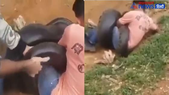 वीडियो डेस्क। सोशल मीडिया पर अजगर और एक शख्स का वीडियो सोशल मीडिया पर खूब वायरल हो रहा है। जिसमें एक भारी-भरकम अजगर ने शख्स को अपनी गिरफ्त में ले रखा है। 29 सेकंड के वीडियो में आप देख सकते हैं कि विशालकाय अजगर ने एक आदमी के पैरों को बुरी तरह से जकड़ रखा है। आदमी उससे निजात पाने कोशिश करता नजर आ रहा है। आस पास के लोगों ने भी शख्स की मदद करने की कोशिश की । यहां लोग जद्दोजहज करते नजर आ रहे हैं।