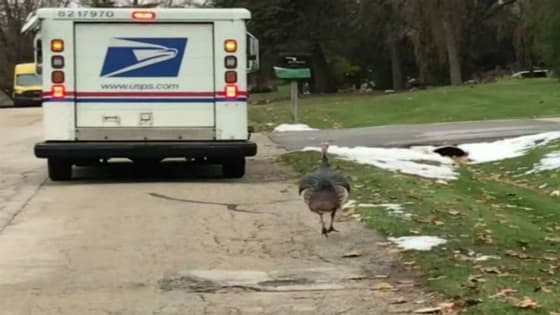 यह टर्की विस्कॉन्सिन के एक पोस्टमैन का कई हफ्तों से लगातार पीछा कर रही है। पोस्टमैन जब भी खत डालने के लिए आता है। टर्की उसके पीछे लग जाती है।