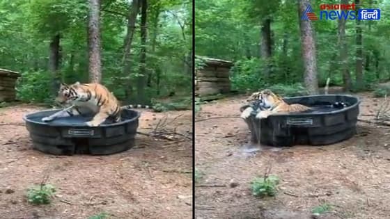 वीडियो डेस्क। सोशल मीडिया पर बाघ का एक वीडियो तेजी से वायरल हो रहा है। घने जंगल में बाघ बाथ टब लेता दिखाई दे रहा है।
