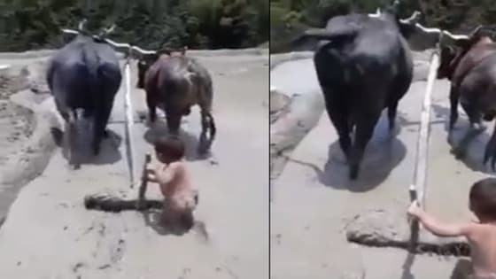 आपका दिन बना देगा नन्हे किसान का क्यूट वीडियो... खेत में पहुंच यूं चलाया हल, बैलों को दिया धक्का