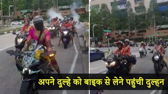 हटके डेस्क: कुछ लड़कियां बचपन से ही अपनी शादी के सपने देखती हैं। इसे लेकर ख़ास प्लानिंग की जाती है। सोशल मीडिया पर एक वीडियो वायरल हो रहा है। इसे सिंगापुर का बताया जा रहा है। इस वीडियो में करीब 20 महिलाएं सड़क पर बाइक चलाती नजर आई। इनको लीड कर रही थी पिंक रंग की साड़ी पहन कावासाकी चलाती दुल्हन। सड़क पर अपनी बारात लेकर निकली दुल्हन के इस वीडियो को अब तक लगभग 5 हजार बार शेयर किया जा चुका है।