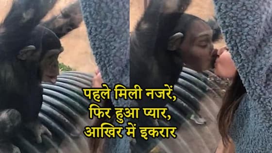हटके डेस्क: सोशल मीडिया पर एक वीडियो वायरल हुआ। इस वीडियो को न्यू मेक्सिको के एक चिड़ियाघर में कैद किया गया। यहां अपनी पत्नी के साथ घूमने आया एक शख्स कैमरा निकालकर शूट कर रहा था। तभी एक चिम्पांजी उसकी पत्नी के नजदीक आया और उसने महिला के होंठों पर किस कर लिया। गनीमत रही कि महिला और चिम्पांजी के बीच कांच की दीवार थी। इसका वीडियो तेजी से वायरल हो रहा है।