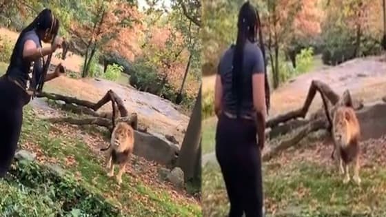 जू घूमने गई महिला कूदी अफ्रीकी शेर के सामने, लोग बनाते रहे वीडियो