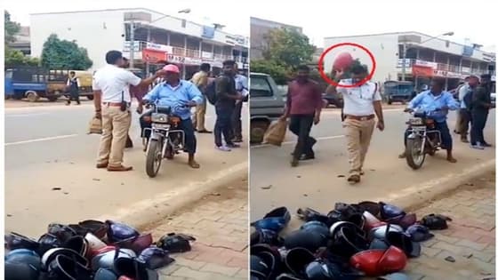 पुलिस ने क्यों निकाल फेंके लोगों के हेलमेट ?