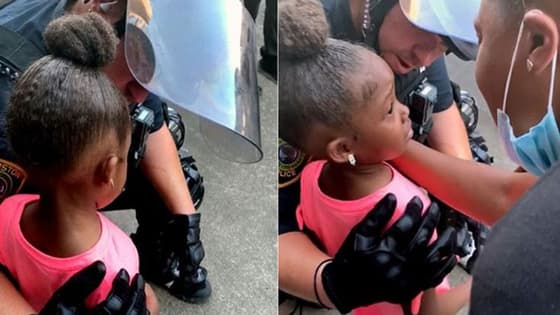अमेरिका: हिंसा के दौरान 5 साल की बच्ची ने पूछा ऐसा सवाल कि रोने लगा पुलिसकर्मी, देखें वीडियो