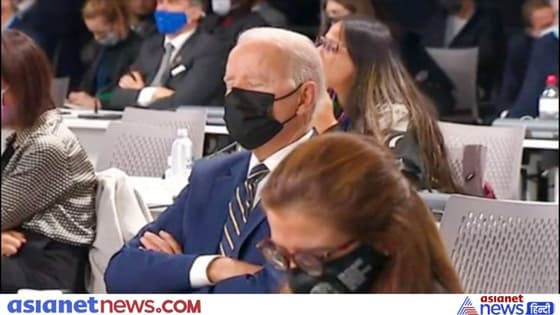 वीडियो डेस्क। COP26 शिखर सम्मेलन के दौरान का अमेरिकी राष्ट्रपति जो बाइडेन (Joe Biden) का एक वीडियो सामने आया है। जहां जलवायु परिवर्तन के प्रभाव पर व्याख्यान चल रहा था तभी जो बाइडेन कुर्सी पर झपकी लेते नजर आए। उनका वीडियो सोशल मीडिया पर वायरल हो रहा है।