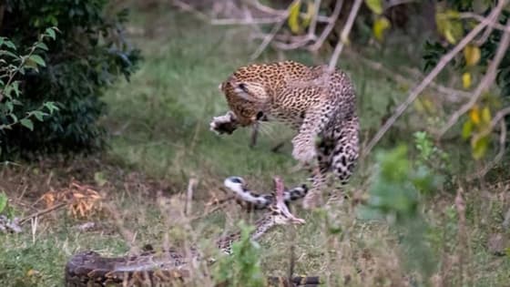वीडियो में दिख रहा है कि अजगर तेंदुए पर हमला करता है और उसे खाने की कोशिश करता है। हालांकि, तेंदुआ अजगर के वार से निकल जाता है। इसके बाद तेंदुआ अजगर पर हमला कर देता है। अजगर जख्मी हो जाता है।