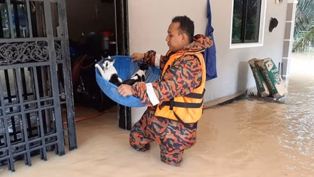 मलेशिया में बीते कुछ दिनों से हो रही जबरदस्त बारिश के कारण शहर का आधा से ज्यादा हिस्सा डूब गया। बाढ़ की स्थिति काफी भयावह हो गई है। सरकार लोगों को बचाने के लिए कई टीमों का गठन कर चुकी है। लेकिन उन जानवरों का क्या, जो इस बाढ़ में डूब रहे हैं।