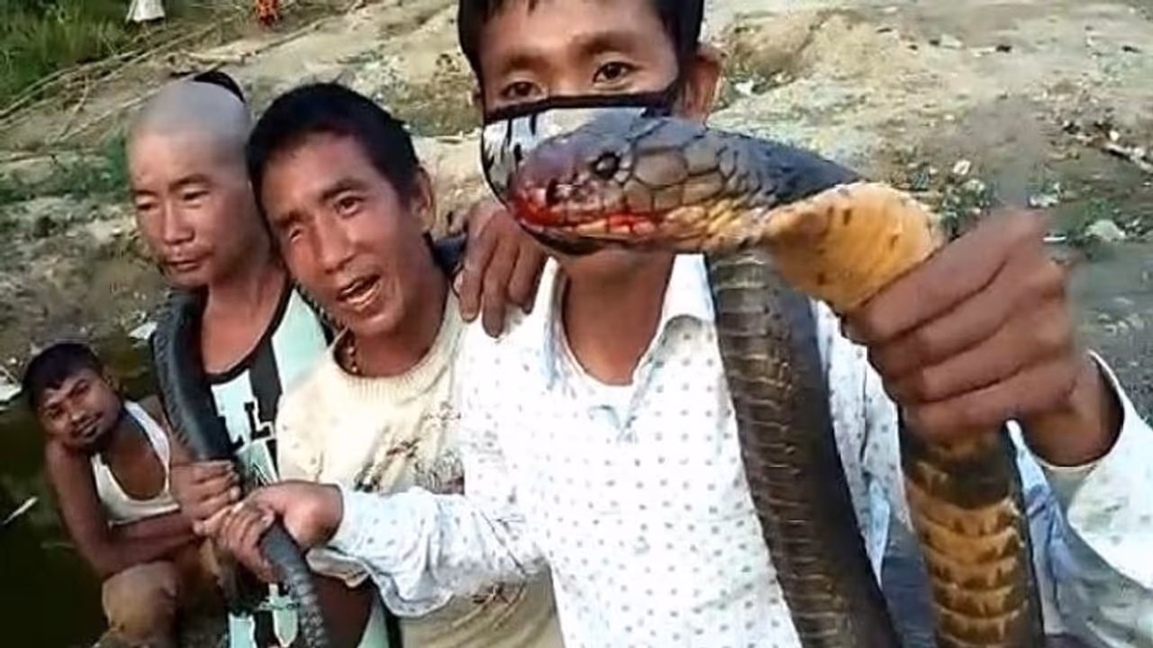 जिस कोबरा को मार कर उसके मीट की पार्टी दी गई, वह 12 फीट लंबा था। वीडियो में देखा गया कि तीन लोगों ने किंग कोबरा को पकड़ रखा था और उसे दिखा रहे थे। उन लोगों ने यह कहा कि कोबरा का शिकार जंगल में किया गया। कोबरा का शिकार करने और उसके मीट की पार्टी देने वाले तीनों लोगों ने कहा कि लॉकडाउन की वजह से उनके घरों में अनाज खत्म हो गया था। ऐसे में शिकार करने के लिए वे जंगल में चले गए, जहां उन्हें कोबरा मिला।