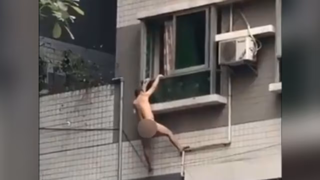 चीन से एक वीडियो सामने आया है, जिसमें एक शख्स बिना कपड़ों के चौथे तल्ले से लटका नजर आ रहा है। ये शख्स अपनी शादीशुदा प्रेमिका से मिलने पहुंचा था लेकिन अचानक उसका पति भी आ धमका। इसके बाद शख्स को इस हाल में स्पॉट किया गया।