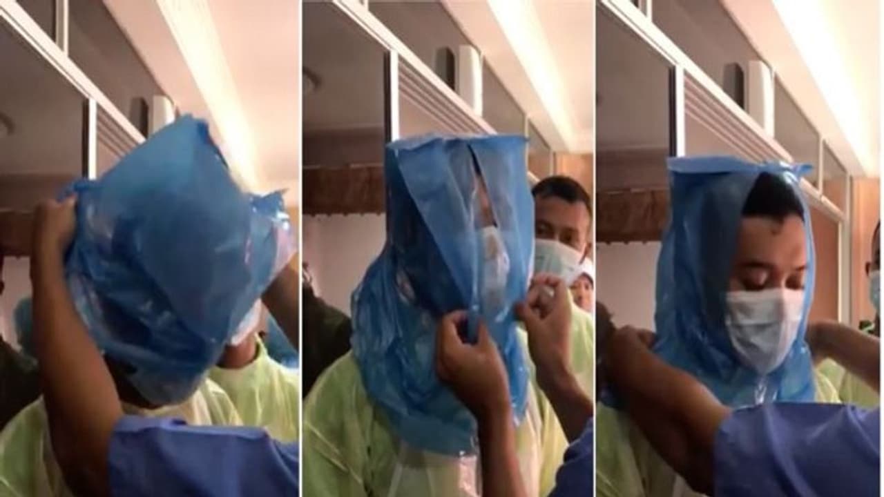 मलेशिया में कोरोना वायरस का संक्रमण बहुत तेजी से फैला है। वहां फेस मास्क की इतनी कमी हो गई है कि हेल्थ वर्कर्स को प्लास्टिक बैग से अपने चेहरों को ढकना पड़ रहा है।