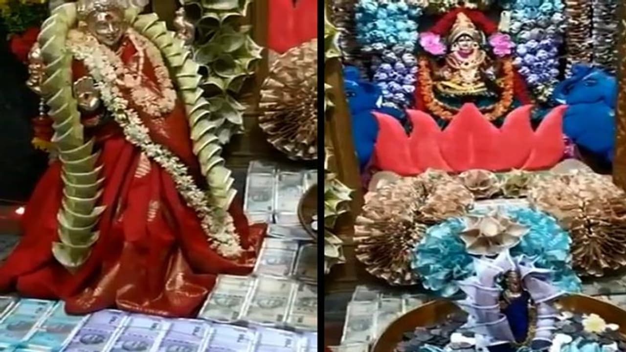 दशहरा पर तेलंगाना के कन्यका परमेस्वरी माता के मंदिर को अद्भुत फूलों से सजाया गया है। ये फूल गुलाब या गेंदा नहीं, बल्कि 1 करोड़ रुपए के नोटों से बनाए गए हैं। जी हां, नोटों को मोड़कर फूलों का शेप दिया गया है। लेकिन सबसे हैरानी की बात तो ये है कि पूजा के बाद इन नोटों के साथ जो किया जाएगा। जी हां, आमतौर पर मंदिर में नोटों को रख लिया जाता है लेकिन यहां ऐसा नहीं होगा।