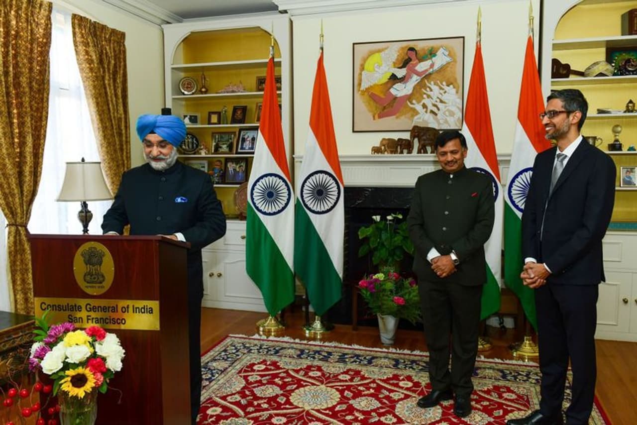 समारोह के दौरान सैन फ्रांसिस्को में भारत के महावाणिज्यदूत टीवी नागेंद्र प्रसाद(India's Consul General in San Francisco,TV Nagendra Prasad) भी मौजूद थे। संधू ने कहा कि पिचाई ट्रांसफॉर्मेशन के लिए टेक्नोनॉजी की असीम संभावनाओं का प्रतिनिधित्व करते हैं। उन्होंने कहा, "वह दुनिया के विभिन्न हिस्सों में समाज के विभिन्न वर्गों के लिए डिजिटल टूल्स और स्किल्स एसेसबल को सुलभ बनाने की दिशा में सराहनीय प्रयास कर रहे हैं।"