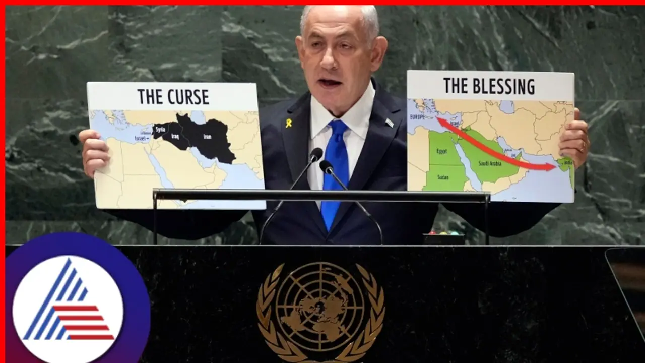 दिलचस्प बात यह है कि दोनों नक्शों में वेस्ट बैंक और गाजा पट्टी सहित फ़िलिस्तीन के कुछ हिस्सों को इज़रायल के हिस्से के रूप में दिखाया गया था. अपने भाषण में, उन्होंने ईरान पर तीखा हमला किया और सीधे तौर पर मध्य पूर्व में अशांति के लिए उस देश को ज़िम्मेदार ठहराया। उन्होंने कहा, 'मेरे पास ईरान के लिए एक सख्त संदेश है। अगर आप हमला करते हैं, तो हम भी आप पर हमला करेंगे। ईरान में ऐसा कोई ठिकाना नहीं है जहाँ इज़रायल की लंबी भुजाएँ न पहुँच सकें। यह बात पूरे मध्य पूर्व पर लागू होती है।'