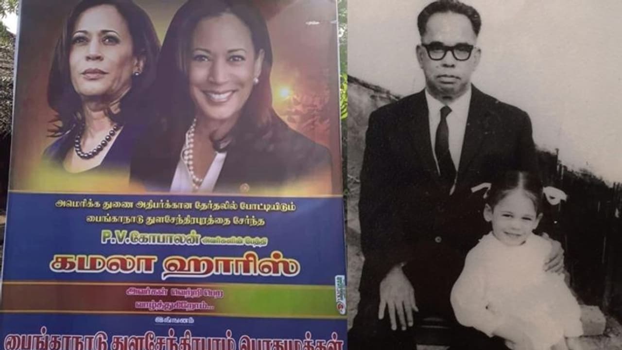 भांजी मीना हैरिस कैलिफोर्निया में वकील हैं। रविवार को मीना ने ट्वीट कर पोस्टर शेयर किए। उन्होंने बताया कि यह पोस्टर तमिलनाडु से भेजा गया है। पोस्टर में कमला हैरिस की फोटो है। इस पर तमिल भाषा में लिखा है कि पी वी गोपालन की नातिन विजेता है। उन्होंने बताया कि तस्वीरें तमिलनाडु में उस जगह से भेजी गई हैं, जहां उनका परिवार रहता है।