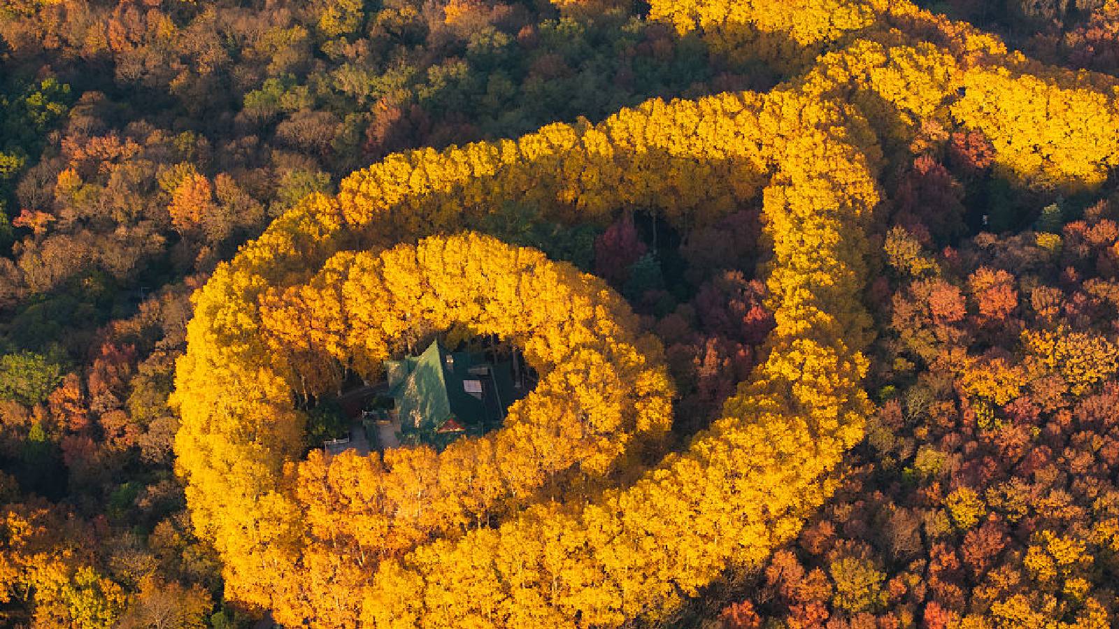Meiling Palace Nanjing: नानजिंग के मेइलिंग पैलेस की सर्दियों की शुरुआत की यह एरियल फ़ोटो इसकी सुनहरी पत्तियों की शानदार सुंदरता को दिखाती है। चियांग काई-शेक का बनाया यह ऐतिहासिक महल मौसम बदलने पर सोने की माला की तरह चमकता है।