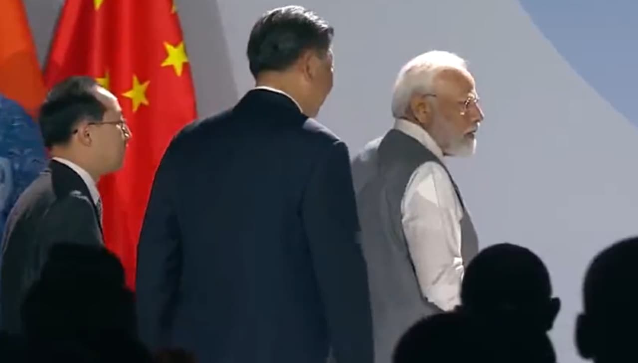 पीएम मोदी-शी जिनपिंग की चलते-चलते हुई मुलाकात, महज कुछ सेकेंड की बात...See Video