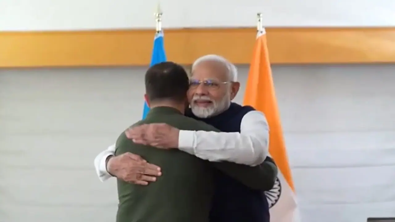 पीएम मोदी जेलेंस्की के साथ गर्मजोशी से मिले। जेलेंस्की जैसे ही करीब मोदी ने उन्हें गले लगा लिया। उनकी पीठ थपथपाई इसके बाद दोनों नेताओं ने हाथ मिलाया। जेलेंस्की ने अंग्रेजी में पूछा, 'आप कैसे हैं'? इसपर नरेंद्र मोदी ने जवाब दिया 'अच्छा'।