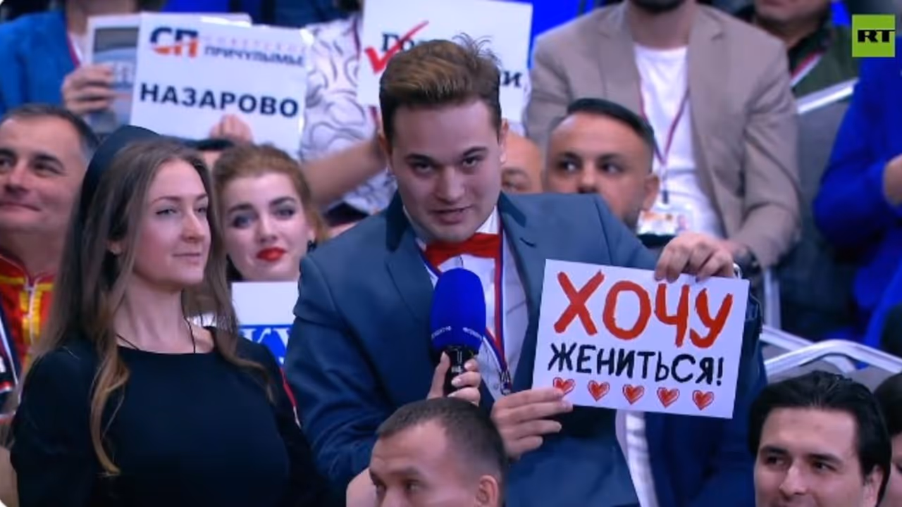किरिल बाज़ानोव ने लाल रंग की बो टाई पहनी हुई थी और हाथ में एक पोस्टर पकड़ा था, जिस पर लिखा था-“मैं शादी करना चाहता हूं।” यही पोस्टर पुतिन का ध्यान खींचने में कामयाब रहा और आखिरकार किरिल को सवाल पूछने की अनुमति मिल गई। हालांकि उसने रूस में बढ़ती महंगाई पर सवाल पूछा, लेकिन चर्चा का केंद्र उसका प्रपोज़ल ही बन गया।