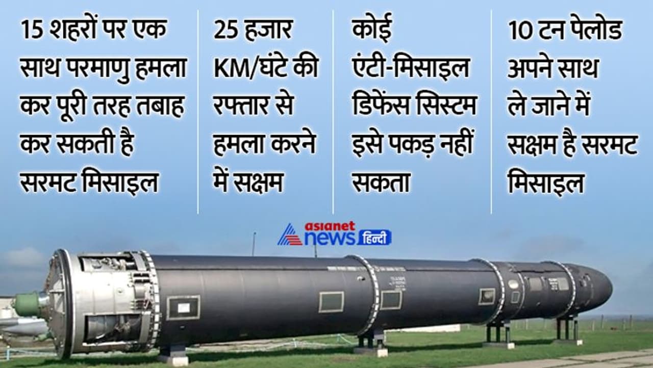 इस मिसाइल की मारक क्षमता के कारण ही इसका नाम सरमट रखा गया है। रूसी भाषा में सरमट का मतलब 'शैतान' होता है। करीब 208 टन वजनी इस मिसाइल में 10 से 15 वॉरहेड्स लगाए जा सकते हैं। रूसी मीडिया के मुताबिक, ये मिसाइल अपने साथ 10 टन तक पेलोड ले जा सकती है। यही वजह है कि ये मिसाइल कुछ ही मिनटों में लंदन, पेरिस और न्यूयॉर्क जैसे शहरों को तबाह कर सकती है।