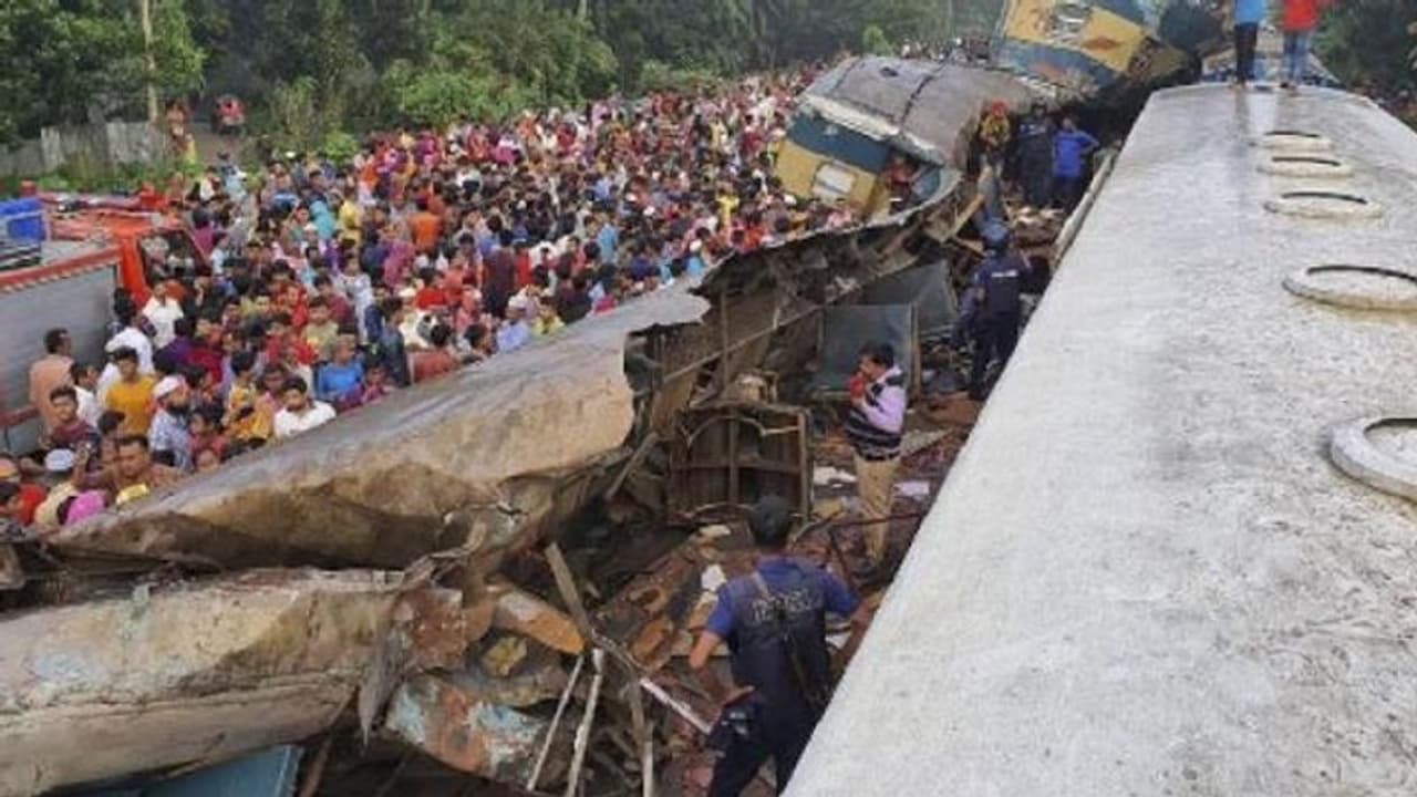 दो ट्रेनों के बीच हुई टक्कर में 16 लोगों की मौत हो गई और अन्य 60 लोग घायल हो गए हैं। जानकारी के मुताबित यह ट्रेन हादसा मन्दोबाग स्टेशन पर उस समय हुआ जब चटगांव जा रही उद्यान एक्सप्रेस की, पटरी बदलते समय ढाका जा रही तुर्ना निशिता ट्रेन से टक्कर हो गई।
